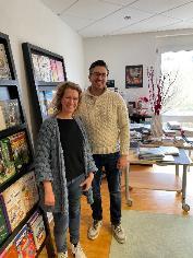 XXL-Verlag: Sonja Sammüller mit Matthias Horlacher vor der neuen Bücher Kollektion