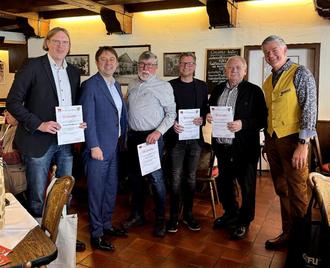 Man sieht es, die Stimmung war hervorragend! v. l. Ben Klinger, Dr. Jens Zimmermann, Horst Frank, Patrick Eckert, Georg Hartenbach und Andreas Engel