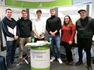Beide waren angetan von der Präsentation der Studenten des Kommunalen Job-Centers, Christopher Scherer und Philipp Koch. Diese stellten auf der Messe ihre Ergebnisse zum Thema „Die gesundheitlichen Auswirkungen der Digitalisierung auf Beschäftigte öffentlicher Verwaltungen“ vor. Mit ihrer Arbeit griffen sie damit ein sehr aktuelles und relevantes Thema auf und wurden für dessen Bearbeitung und Präsentation mit einem „sehr gut“ belohnt.