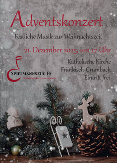 Am 4. Advent findet das diesjährige weihnachtliche Konzert des Spielmannszuges in Fränkisch-Crumbach statt. Lassen Sie sich am Nachmittag des 4. Advents in Weihnachtsstimmung versetzen. Mit einer vielfältigen Auswahl an Stücken werden Sie in der katholischen Kirche für einen Moment aus der Hektik geholt.