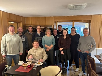 Elf unserer 15 Kandidaten beim Adventskaffee, v.l.n.r.: Simon Kowarsch, Patrick Wörle, Jonas Weidmann, Daniel Hanke, Axel Merg, Ottilie Röhner, Jochen Habermehl, Alexander Bender, Maja Merg, Brigitte Grießer, Stefan Rink