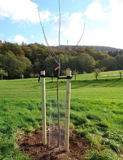 Ein Apfelbaum der Sorte Zabergäurenette, gepflanzt im Rahmen der diesjährigen Streuobstaktion im Reichelsheimer Naturschutzgebiet „Stollwiese bei Erzbach“.