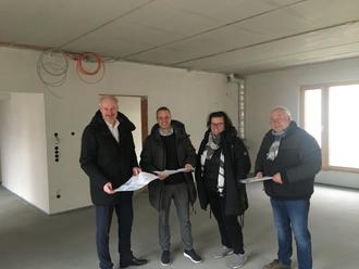 Als nächstes wird nun rechtzeitig die neue Kücheneinrichtung ausgeschrieben, damit sie im Sommer eingebaut werden kann. Ein Fachmann des mit der Küchenplanung beauftragten Ingenieurbüros aus Bad König, der Architekt Jochen Groß, die Kita-Leiterin Katharina Schwab und Bürgermeister Eric Engels tauschten sich vor Ort nochmals darüber aus, was künftig benötigt wird. Zuvor hatte das Kita-Team seinen Bedarf konkretisiert, mit dem es den Kindern Frühstück und Mittagessen sowie je nach Saison auch etwas außer der Reihe servieren will. Weil in der Kita nicht ständig selbst gekocht wird wie in einer Großkantine, ließen sich die Ansprüche ans Material und damit die Kostenschätzung entsprechend anpassen - ohne dabei Abstriche zu machen an den Forderungen zum Beispiel des Gesundheitsamtes in Sachen Sicherheit und Hygiene. Das bietet nun die Chance, dass Angebote nicht nur von teuren Gastro-Ausstattern abgegeben werden können, sondern dass auch konventionelle Küchenbauer aus der Region mitbieten können. Nicht gespart wird an den von der Kita zusammengestellten Geräten. Eine professionelle Industriespülmaschine gehört ebenso dazu wie ein großer Kühlschrank und vor allem ein Konvektomat, mit dem sich die angelieferten Speisen komplett warmhalten lassen, damit die Kinder endlich gemeinsam essen können und nicht länger in zeitlich versetzten Schichten. Die Kostenschätzung beläuft sich derzeit auf 46,5 T€. Nachdem im letzten Jahr ein Förderantrag der Gemeinde an die IGO bewilligt worden ist, kommen 65 % davon (maximal knapp 33 T€) als Zuschuss aus dem LEADER-Programm; der Rest wird aus dem Gemeindehaushalt zu bezahlen sein.