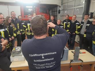 Ein paar gezielte Handgriffe, ein Ruck, ein Knack und schon ist die Tür offen. So schnell muss es gehen, wenn hinter der verschlossenen Tür eine Person liegt, die dringend Hilfe benötigt. Damit die Mitglieder der Einsatzabteilung das auch weiterhin schnell und sicher können wurde am vergangenen Montag geübt.