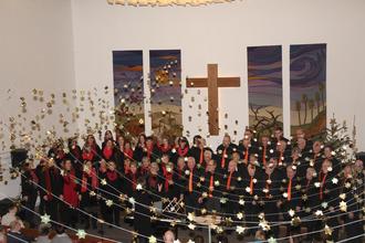Wie bringt es das kleine „Singende Dorf“ Beerfurth nur fertig, zur Adventszeit ein Konzert mit über 60 Sängern und Sängerinnen auf die Beine zu stellen? Der Männergesangverein MGV Beerfurth und der Frauenchor FCB Beerfurth brachten am Samstag zum 3. Advent die Johanneskirche zum Kochen! Die Dirigenten Jürgen Martini und Kerstin Kredel hatten einen bunten Strauß von Liedern zusammengestellt, und moderiert von Hansi Kreuzer (MGV) und Ingrid Komarnyckyj (FCB) trugen die Interpreten die Werke mit hohem Gefühl und Können vor. Die Männer von leise, klangvoll, bis stimmgewaltig kräftig, und die Frauen versiert, schwung- und gefühlvoll, verzauberten sie ihre Gäste schon zu Beginn ihrer Vorträge.