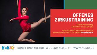 Seit Donnerstag, den 11. Januar 2024, organisiert der Kunst und Kultur im Odenwald e. V. (KuKiO) ein wöchentliches Offenes Zirkustraining in der Sporthalle der Reichenbergschule, Beerfurther Straße 24, 64385 Reichelsheim. Es soll Zirkuskünstler:innen und Jongleur:innen einen Raum zum Training und Austausch bieten. Das Angebot richtet sich vornehmlich an professionelle sowie fortgeschrittene Künstler:innen, wobei auch Neulinge der Zirkuskünste willkommen sind. Es werden keine Zirkusutensilien gestellt, Jede:r bringt eigenes Equipment zum Training mit.