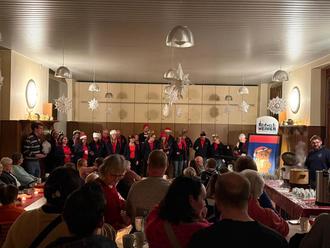 Weitere Lieder folgten, viele davon zusammen mit dem Publikum. Ein besonderes musikalisches Highlight war die Begleitung eines Liedes mit einem Hackbrett, einem in dieser Region eher seltenen Instrument, das für einen besonderen Klang sorgte. Die Veranstaltung war gut besucht, alle Altersgruppen waren vertreten und die positive Resonanz zeigte, dass sich die Vorbereitungen gelohnt hatten. Ein stimmungsvoller Jahresabschluss.