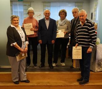 Bild vlnr: Edith Spalt - 50 Jahre, Hilde Pfeifer - 50 Jahre, Georg Schnellbächer - OWK Bezirksvorsitzender, Ingrid Arras -70 Jahre, Wolfgang Nicklas - Stellv. Vorsitzender OWK Reichelsheim, Dr. Hermann Knell - 60 Jahre, nicht auf dem Bild: Wilfried Maser - 50 Jahre