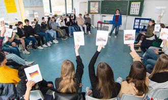 Mit Spiel und Spaß das Erlernen der französischen Sprache fördern und die Kultur des Nachbarlandes vorstellen – das ist das Ziel von FranceMobil. Am 28. Februar besuchte FranceMobil die Georg-August-Zinn-Schule Reichelsheim (GAZ). Dabei kamen die Schülerinnen und Schüler je zweier 7. und 8. Klassen für jeweils 45 Minuten in den Genuss der interaktiven Animation, die von der französischen Lektorin Mathilde Charras durchgeführt wurde. Die Lernenden schätzten nach eigenen Angaben u.a. besonders die humorvolle und motivierende Art der Lektorin sowie die spielerische Auseinandersetzung mit dem Französischen.