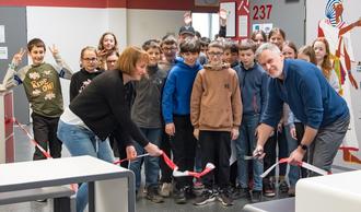 Der Jubel bei den Schülerinnen und Schülern der Georg-August-Zinn-Schule Reichelsheim (GAZ) war groß, als am 13.3.2024 Schulleiter Herwig Bendl und Oberstudienrätin Kirsten Berg die neuen Flurmöbel freigaben. Und so strömten mit dem symbolischen Durchtrennen des rot-weißen Absperrbands sofort dutzende Lernende an die neuen Arbeitsplätze und machten eine erste Sitzprobe.