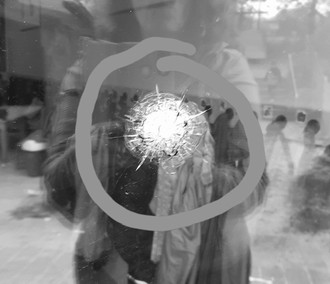 einen großen Schreck erlebten wir, als wir bemerkten, dass mit irgendetwas auf eine Scheibe in unserem Kindergarten Beerfurth geschossen wurde. Das Bild zeigt das Ergebnis dieses Schusses.