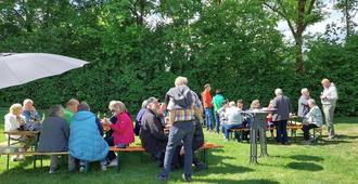 Bei angenehmen Temperaturen konnte der Verein wieder zahlreiche Besucher mit Gegrilltem und Salaten und später mit Kaffee und Kuchen bewirten. In lockerer Atmosphäre konnten sich die Besucher in den Pavillons, und an Stehtischen oder Sitzgelegenheiten unter freiem Himmel niederlassen, um den Tag zu genießen.