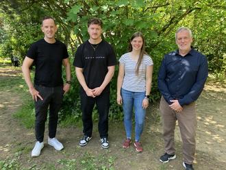 Unser Bild zeigt von links: Personalratschef Christian Hofmann, Simeon Bensinger, Flora Berger und Schulleiter Herwig Bendl.