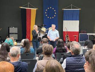 Im Anschluss ergriff Sophie Togna das Wort, die gemeinsam mit Catherine Fleury die französischen Gastschüler in diesem Jahr begleitete. „Unsere Länder sind nicht nur befreundet, wir können zusammenarbeiten“, sagte Togna und erhielt viel Applaus, als sie erklärte: „Ich habe einen Traum: Dass wir aus unseren Kindern europäische Bürger machen.“