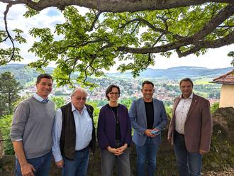 Nach einem abschließenden Besuch der aktuellen Baustelle, bei der entlang eines Teils der unteren Schlossmauer Photovoltaik-Anlagen installiert werden, um zukünftig die Warmwasseraufbereitung auf dem Schloss über Solarenergie gewährleisten zu können, verabschiedeten sich die Vertreter aus dem Rathaus.