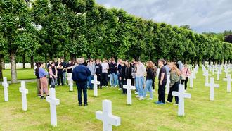 Beeindruckt waren die Lernenden von der Art der Erinnerungs- und Gedenkkultur der USA, was sich auf dem amerikanischen Friedhof zeigte. Die mehrstündige Begehung der „Butte de Vauquois“ zeigte die Aggressivität des Minenkrieges, der ein Dorf verschlungen hat, das heute an anderer Stelle wiedererrichtet und von der Gruppe besichtigt wurde. Ausgerüstet mit Taschenlampen und Schutzhelmen ging es dann in 10 Meter Tiefe in die Stollen, um in einem Teil des 17 Kilometer langen Bereichs zu erkunden.