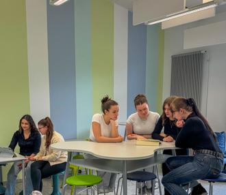 Unser Bild zeigt Schülerinnen der Q-Phase im neuen Oberstufenraum der GAZ.