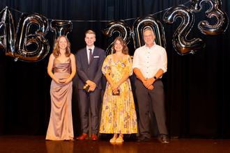 Besondere Würdigungen der Fachschaften gingen an: Hannah Göttmann (Deutsch, Fremdsprachen und Biologie), Jan Hanstein (Fremdsprachen), Carlina Hartmann (Deutsch), Jessica Hofmann (Fremdsprachen), Eric Jochim (Geschichte und Chemie), Rahel Nölling (Politik und Wirtschaft), Martin Rudolph (Mathematik und Physik) und Julian Vetter (Chemie). Souverän moderiert wurde der Abend von Luisa Pleil und Silas Wolf aus der Jahrgangsstufe 12.