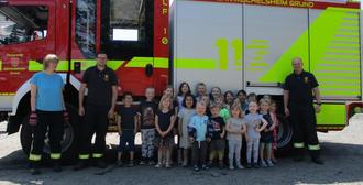 Zum Abschluss ihrer Projektwoche zum Thema „Feuer“ bekamen die Kinder der Kita Ober-Ostern doch tatsächlich Besuch von der Feuerwehr. Im Rahmen der Brandschutzerziehung erklärten zwei Feuerwehrmänner und eine Feuerwehrfrau der Feuerwehr Reichelsheim Grund den Kindern spielerisch alles, was sie zum Thema Feuer und Feuerwehr wissen müssen. Neben der Abfrage ihrer Adresse und dem Erlernen der Notrufnummer, durften die Kinder ihr bereits vorhandenes Wissen testen und erweitern, einen echten Feuerwehrhelm anprobieren und einmal ausprobieren, wie es sich anhört und was sie tun müssen, wenn die Kita aufgrund eines Feuers geräumt werden muss. Das absolute Highlight für die Kinder war das riesige, neue Feuerwehrauto draußen auf dem Hof. Hier durften sie hineinklettern und sich alles anschauen, was die Feuerwehr so an Board hat und im Einsatzfall braucht. Mit einem echten Schlauch und Strahlrohr konnte schließlich jedes Kind Wasser spritzen und zum Abschluss gab es sogar noch kleine Geschenke für alle. Wir danken Stefan Thamm, Christiane Hartmann und Raphael Hofmann für diesen schönen und informativen Vormittag, der den Kindern wirklich viel Spaß gemacht hat.