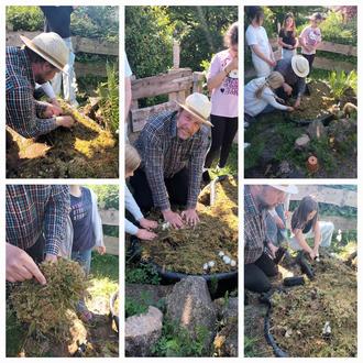 Seit diesem Frühjahr hat der Schulgarten eine weitere Besonderheit hinzu gewonnen: ein eigenes kleines Moor im Garten. Selbst für den Klimaschutz aktiv werden und einen Beitrag leisten. Das Klima auf diese Weise schützen klang für uns (3a mit Klassenlehrerin Pia Peters) erst mal sehr ungewöhnlich. Viele bauen Gemüse in ihrem Garten an, aber ein Moor? Ist das überhaupt möglich? Ja! Und es ist sogar überhaupt nicht schwer, erfuhren wir von Herrn Sonnberger vom LPV in Reichelsheim. Eine alte Teichwanne, zerschlagene Dachziegel, etwas Weißtorf und das Grundgerüst für unser kleines Moor stand. Gerne darf das Moor in der direkten Sonne liegen. Es sollte nur ein Zugang zu Regenwasser vorhanden sein. Dadurch können lange Trockenperioden überbrückt werden. Mit großer Hingabe wurde dann die Angießpatenschaft von den Schülern übernommen. Herr Sonnberger zeigte den Kindern zuerst mit Hilfe eines Eimers, wie saugfähig Torfmoos eigentlich ist – dreimal eintauchen und ausdrücken, da war der mit Wasser gefüllte Eimer leer. Dabei lernten die Schüler, wie wichtig jene Speicher- und Abgabefähigkeit der Pflanze für den Wasserhaushalt der Natur ist. „Aus jedem Blättchen kann eine neue Pflanze werden“, so Herr Sonnberger.