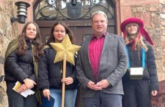 Am Montag, 6. Januar 2025, empfing Bürgermeister Stefan Lopinsky im Reichelsheimer Rathaus 3 junge Sternsingerinnen der Kath. Pfarrgemeinde „Verkündigung des Herrn“. Stellvertretend für alle Mitarbeitenden der Gemeindeverwaltung nahm er die Segenswünsche "C (Christis) M (Monsionem) B (Benedicat) - Christus segne dieses Haus", entgegen.