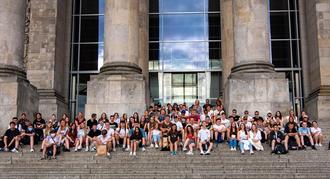 Unser Bild zeigt die Reisegruppe der GAZ auf der Treppe des Reichstagsgebäudes in Berlin mit ihren Lehrern Kirsten Berg, Patrick Eckert, Raoul Giebenhain, Beate Kusch und Martina Schemenau.
