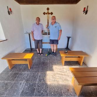 Der in die Jahre gekommene Innenraum der Wegrandkapelle am Friedhof Ober-Ostern wurde von Horst Meister und Willi Falter neu gestrichen und strahlt jetzt wieder in voller Pracht. Der Ortsbeirat bedankt sich bei den beiden Helfern.