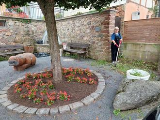 Der schöne Platz am „Mosesbrünnchen“ (Ecke Beerfurther/Reichenberger Straße) wurde jetzt wiederholt von Beate Laier von Unkraut befreit. Sie unterstützt damit die Gemeinde bei der Pflege ihrer zahlreichen Anlagen, deren Bewuchs besonders in diesem Jahr durch das feuchte Wetter stark gewachsen ist. Man kommt mit der Beseitigung des Unkrauts kaum hinterher. Kulturamtsleiter Jochen Rietdorf ließ Behälter bereitstellen, die dann am Tag darauf vom Bauhof abgeholt wurden. Er bedankte sich im Namen der Gemeinde Reichelsheim ganz herzlich bei Beate Laier für ihre tatkräftige Unterstützung.