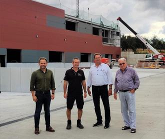 Der Geschäftsführer Stefan Krämer nahm sich die Zeit und führte entlang der neu sanierten und ausgebauten Crumbacher Straße, über die zukünftig die gesamte Anlieferung ablaufen soll, bis in den beeindruckenden Neubau und informierte Herrn Lopinsky, Herrn Göttmann und Herrn von Falkenburg über den seitherigen Bauverlauf.