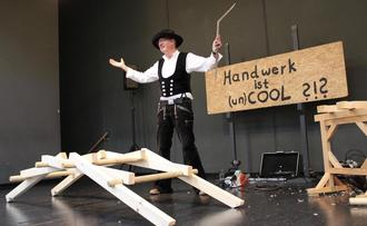 In den Genuss des durch den Landesinnungsverbands des Bayrischen Zimmererhandwerks geförderten Stücks inklusive Nachbesprechung kamen an der Georg-August-Zinn-Schule Reichelsheim die Lernenden der 8. und 9. Haupt- und Realschulklassen. Die Veranstaltung ist ein neuer Baustein im Rahmen der Berufsorientierung der GAZ. Schulleiter Herwig Bendl und OloV-Schulkoordinator Christian Hofmann freuten sich, dass auch die Kreishandwerkerschaft Odenwaldkreis mit Geschäftsstellenleiter Harald Buschmann und Obermeister Axel Engelhardt an der Spitze vertreten war und den Schülerinnen und Schülern Informationen zu den Möglichkeiten eines handwerklichen Berufs aufzeigen konnte.