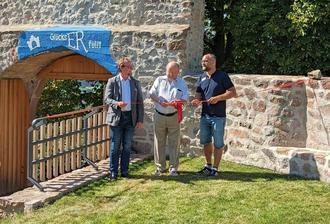 In der daraufhin folgenden Rede von Prior Konstantin Mascher reflektierte er über die vielfältigen Bedeutungen des Begriffs "Mauer", der sowohl Trennung als auch Verlässlichkeit symbolisieren kann. In diesem Fall steht die Stabilität der Mauern auf dem Reichenberg zweifellos im Vordergrund und somit für etwas Gutes. Anschließend durchschnitten Konstantin Mascher, Dr. Robert Müller und Simon Heymann das rote Band vor dem Nordtor und dem Beginn der Zwingermauer und führten den Bereich somit auch offiziell dem „Erfahrungsfeld“ zu.