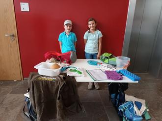 Jordy und Leni waren mit dabei. Sie erklärten Herrn Conz unsere Bach- und Waldrucksäcke und was ihre Klassen an den Draußentagen machen.