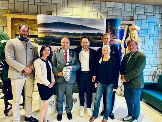 Von links nach rechts: Konrad Graf zu Erbach-Erbach, Simone Lohbrunner, Jablonkas Bürgermeister Stanisław Kasprzak, Oliver von Falkenburg, Eva Eisenhauer, Marcus Wanke und Ralf Eisenhauer.onka