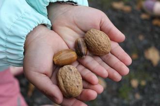 Gemeinsam mit der Eichhörnchen-Handpuppe „Erik“ lernten die kleinen Entdecker Wissenswertes über den Wald und seine Bewohner. Die Kinder sammelten Eicheln und Walnüsse und suchten im Anschluss nach lebensgroßen Holzfiguren von Waldtieren, die Herr Acker zuvor „versteckt“ hatte. Die Aktion endete mit einem gemeinsamen Frühstück unter einem großen Walnussbaum, bei dem die Kinder einer Geschichte über Waldtiere lauschten.
