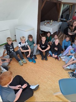 Am Donnerstag und Freitag (19.9./20.9) besuchten die Schüler der Rotmilan-Klasse und der Bienen-Klasse der Beerfurther Grundschule den Jugendtreff in Reichelsheim. Dort konnten sie Tischfußball, Airhockey oder Dart spielen. Einige Kinder versuchten sich auch an den vorhandenen Sportgeräten. Nachdem sich alle einen Überblick über die Angebote des Jugendtreffs gemacht hatten, wurde gemeinsam Obst geschnitten. Dazu gab es leckere Waffeln mit Eis. So gestärkt ging es zur nächsten Herausforderung - dem Fußballquiz. Hier zeigte sich deutlich, dass auch die Mädchen beider Klassen eine Menge über Fußball wissen!