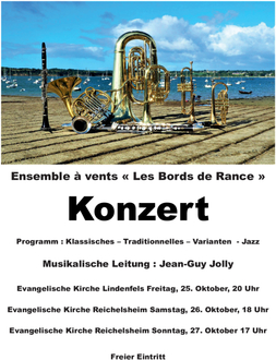 Die Profi-Musiker verlangen keinen Eintritt, über freiwillige Spenden zur Deckung ihrer Reisekosten würden sie sich freuen. Die Gruppe kommt aus der Baie de Mt. St. Michel, dem Norden der Bretagne, der direkten Umgebung unserer Schwesterstadt Dol de Bretagne. Sie spielen alle Richtungen, angefangen von Klassik über Traditionelles bis zu Jazz und sie spielen aus Freude an der Musik.