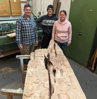 Bild v.l.n.r.: Herr Simon Lortz (Fachlehrer der BSO), Herr Fabian Naas (Auszubildender zum Holzbildhauer), Fachlehrerin Frau Kerstin Jennrich (Fachlehrerin der BSO)