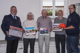 Beim Dankeschön der Feuerwehr im Museum von links: Andreas Baier, Birgit Kalberlah, Günter Götz, Gerd Lode und Sören Erbeldinger