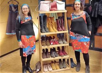 Nachhaltigkeit anhand gebrauchter Kleidung und Accessoires demonstrieren hier Barbara Schirmer (links) und Lisa Gimbel von der Boutique Lieblingsstücke des Roten Kreuzes.