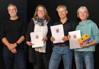 Seit 25 Jahren sind (von rechts) Stefanie Oeß, Michael Frank und Laura Zieres im Schuldienst. Zu diesem besonderen Jubiläum gratulierte nun der stellvertretende Schulleiter Direktor Herwig Bendl (links) im Rahmen einer Gesamtkonferenz den Lehrkräften und überreichte die Urkunden und Glückwünsche des Landes Hessen.