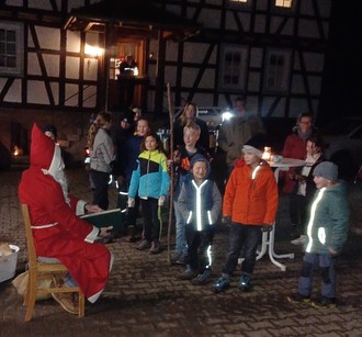 Am Nikolaustag war in unserem Ortsteil Rohrbach der Nikolaus auf dem Hannesse Hof der Familie Eitenmüller zusammen mit seiner Helferin anzutreffen. Zahlreiche Kinder aus dem Ort waren da und er konnte in seinem mitgebrachten Buch viele Informationen über jeden erfahren und zum Besten geben. Zusätzlich hatte er für alle ein kleines Präsent dabei. Die Kinder überzeugten den Nikolaus mit Darbietungen von Gedichten sowie gesungenen Weihnachtsliedern. Ob bereits ein bisschen älter oder noch ganz klein: jeder gab sein Bestes und wenn es einmal hakte bei einem Gedicht oder Lied, halfen die Eltern ein wenig dazu. Es war schön, so viele glückliche und lachende Kinderaugen an diesem Abend zu sehen!