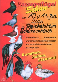Einladung zur Lokalschau ins Schützenhaus, Hermann-Löns-Straße. Gezeigt wird wieder ein buntes Bild der Rassevielfalt. Geöffnet ist die Schau am Samstag, 10. Januar, ab 14 Uhr und am Sonntag, 11. Januar, ab 10 Uhr. Für das leibliche Wohl wird bestens gesorgt, am Sonntag gibt es wieder Mittagessen, an beiden Tagen Kaffee und Kuchen sowie eine Tombola. Über Ihren Besuch freut sich der Verein.