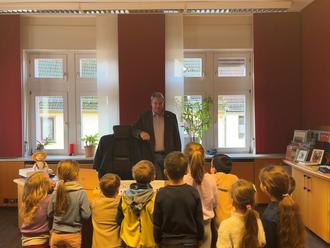 Bürgermeister Stefan Lopinsky begrüßte die kleinen Gäste persönlich und führte sie durch das Rathaus. Dabei erklärte er kindgerecht, welche Aufgaben eine Gemeindeverwaltung übernimmt und wie die Arbeit der Mitarbeiterinnen und Mitarbeiter den Alltag in Reichelsheim prägt. Die Kinder zeigten sich interessiert und stellten dem Bürgermeister zahlreiche Fragen.