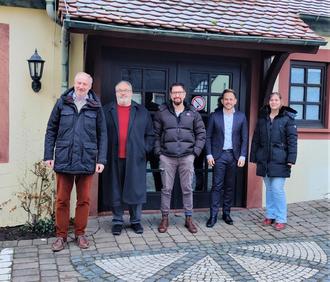 Bild v. l. n. r.: Eric Engels (Bürgermeister Fränkisch-Crumbach), Thomas Worch (Pfarrer Fränkisch-Crumbach), Daniel Häfner (Jugendpfleger), Oliver von Falkenburg (Verwaltungsleiter Reichelsheim), Sandra Michaelis (Ansprechpartnerin Suchtprävention der GAZ-Schule Reichelsheim