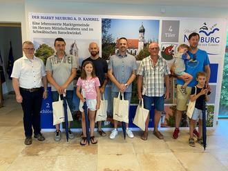 Zu gewinnen gab es ein Sortiment, bestehend einen Familienschirm mit dem Logo des Marktes Neuburg, eine Markt Neuburg-Tasse und verschiedene Schreibmaterialien.