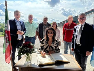 Nach dem Gespräch mit den Landwirten hat sich die Bayer. Staatsministerin in das Goldene Buch des Marktes Neuburg a. d. Kammel eingetragen.