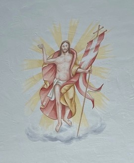 Hervorzuheben ist der Auferstandene Christus, der nun die Giebelseite ziert und der von Kirchenmaler Johannes Riggenmann mit viel Einfühlungsvermögen gemalt wurde.