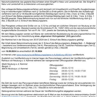 Bebauungsplan „Eisberg Süd - 1. Änderung“, Markt Neuburg a. d. Kammel