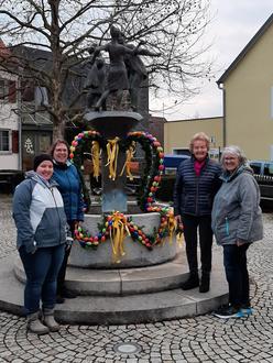 Haben in diesem Jahr gemeinsam den Osterbrunnen in Neuburg aufgebaut: Claudia Weiss, Ulrike Böck, Anni Kuen und Heike Laible