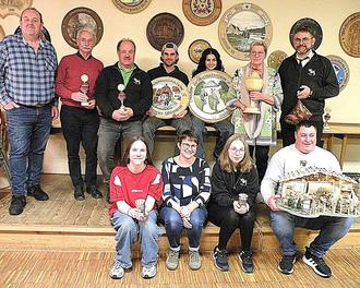 Tobias & Samira Lutz und Alexander & Eva Uhlmann stifteten anlässlich ihrer Hochzeit eine Hochzeitsscheibe. Für diese war ein Durchschnittsteiler aus den vier von den Brautpaaren abgegeben Schüssen errechnet worden. Nun galt es, diesem 422,3 Teiler so nah wie möglich zu kommen. Am besten gelang dies der Jungschützin Vanessa Ferraiolo, die mit einem 422,8 Teiler die Scheibe für sich gewinnen konnte. Auch dieses Jahr spendeten wieder die „runden“ Geburtskinder für die Geburtstagsscheibe. Die ersten drei Geldpreise gingen hier an Simone Seitz (25,0 Teiler), Edwin Heider (28,4 T) und Johannes Uhlmann (40,8 T). Für die Krippenscheibe stellte Willy Weißel fünf seiner selbst gestalteten Krippen zur Verfügung. Mit einem 59,8 Teiler konnte diese Andreas Schmidt für sich entscheiden. Ihm folgten Georg Bertelshofer (88,3 T), Anna Bertelshofer (88,3 T), Karlheinz Engelhardt (101,0 T) und Alexander Uhlmann (104,3 T). Den Beyerlein-Pokal gewann mit einem 60,0 Teiler Ernst Eischer vor Marcell Kampe (135,0 T) und Paul Kümpflein